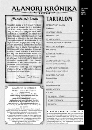 Alanori Krónika 144. (2008. január) - Tartalomjegyzék