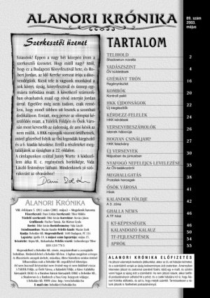 Alanori Krónika 89. (2003. május) - Tartalomjegyzék