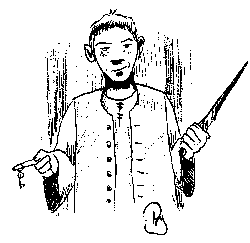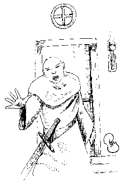 A tolvaj magában motyogva fohászkodott valamelyik istenéhez, mialatt négykézláb kuporgott a padlón. Nem reménykedett már, hogy sikerül kijutniuk ebből az egérfogóból. Ezalatt azonban Clashton megtalálta a megoldást. "A kígyó S-et formáz!" Megpróbálta megnyomni a képet, de a kasza majdnem lemetszette a kezét. A földre vetette magát, s próbált nem arra figyelni, hogy a tolvaj ott reszket mellette. A kasza újra elsuhant felettük. Ha most nem sikerül, akkor a következő suhintás lenyesi a fejüket...