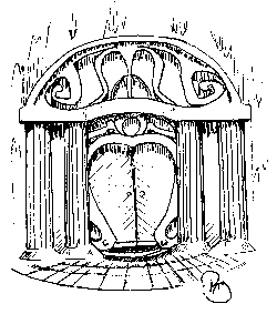 A kép szélénél finom, halvány vonal látszott. Clashton óvatosan megérintette a képet, aztán elhatározta magát, és határozott mozdulattal belenyomta az ajtóba. Halk kattanás hallatszott, de más egyéb nem történt. A kaput legalább tizenkét jelenet díszítette.