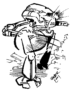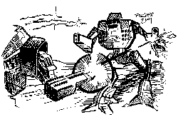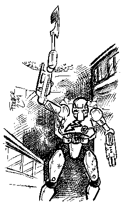 Egy óvatos mozdulattal megpróbálta elmozdítani a mechet. A jobb karon lévő fejszét használva egy határozott csapással eltakarította a mech előtti falat, majd megemelte a bal lábat, és kilépett vele az útra. A piros pont egyelőre mozdulatlan maradt. Megpróbálta felemelni a jobb lábát is, ám az nem engedett a rá omlott törmeléktől. Mi történhetett? Egy ekkora mechet nem állíthat meg egy pár vacak kis kődarab. Megmozgatta a lábfejet, mire apróbb kődarabok gurultak le az útra, a láb azonban továbbra sem engedett. A piros pont lassan mozgásnak indult, és nem volt kérdéses, hogy csak másodpercei vannak, mire ellenfele odaér hozzá. Gordie óvatosan leengedte a mech jobb karját, és a fejszével elkezdte lesöpörni a lábáról a nagyobb köveket. Lassan előbukkant a lábfej, és nyilvánvalóvá vált, hogy miért is nem tudott eddig megmozdulni a hatalmas végtag. Egy óriási vasgerenda szúródott át a bokaízületen, gyakorlatilag odaszögezve a mechet az épület alapjához. Méretes árnyék vetődött a szabadulni próbáló mechre, és Gordie tudta, hogy sürgősen cselekednie kell, különben ellenfele még a gyilkosságért járó különdíjat is besöpri.