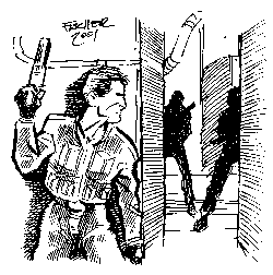 Nem volt más választása, kirohant az utcára, és befordult a legközelebbi sikátorba. Egy kicsit kifújta magát, majd ismét futásnak eredt. Már nem is nézett hátra, csak futott és futott. A következő sarkon balra kanyarodott, utána pedig jobbra. Ott lekuporodott egy szemeteskuka mellé. Alig kapott levegőt, égető érzés járta át a testét, és egyre csak arra gondolt, hogy az ördögbe találták meg pont itt, és pont most. Benyúlt a kabátja zsebébe, és remegő kézzel előhalászta a Mauser and Gray tűpisztolyát, majd ellenőrizte, hogy töltve van-e. Miután meggyőződött róla, hogy tüzelésre kész állapotban van a fegyvere, sóhajtott egy nagyot, és lassan elkezdett felegyenesedni. Jobbra nézett. A sikátor szegényes világításában egyetlen alakot sem látott, így biztonságban érezte magát.