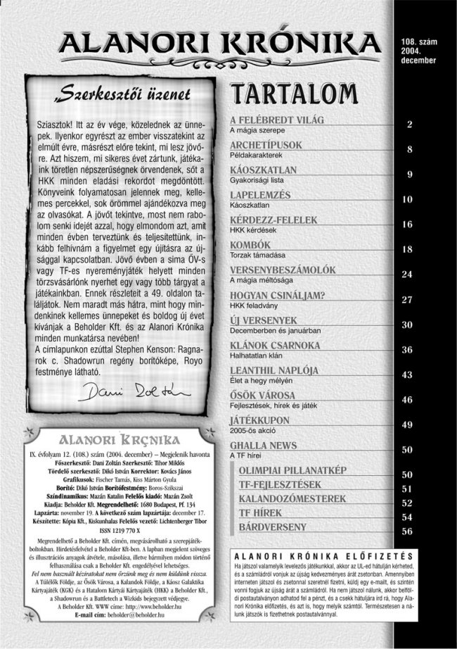 Alanori Krónika 108. (2004. december) - Tartalomjegyzék