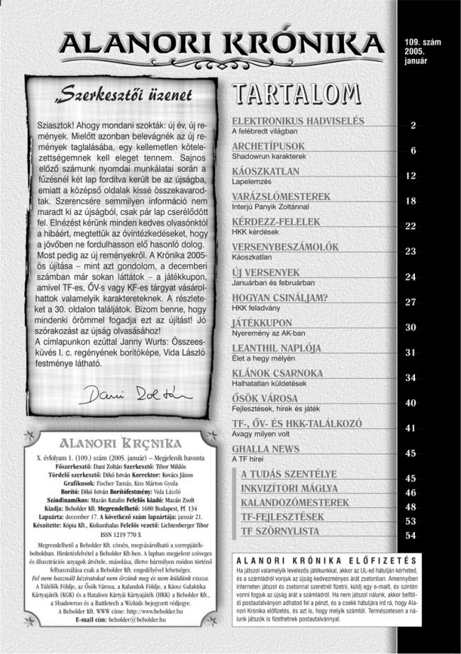 Alanori Krónika 109. (2005. január) - Tartalomjegyzék