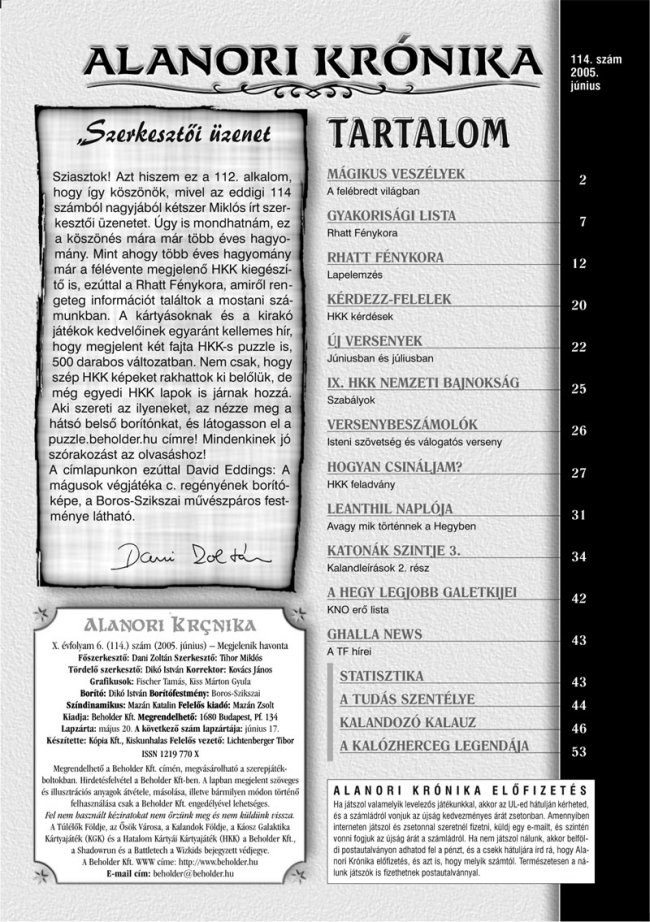 Alanori Krónika 114. (2005. június) - Tartalomjegyzék