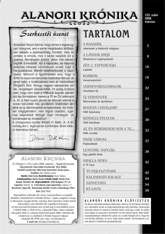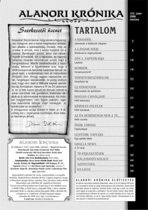 Alanori Krónika 123. (2006. március) - Tartalomjegyzék