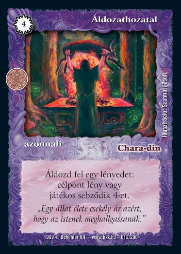 Hatalom Kártyái kártyalap - Áldozathozatal