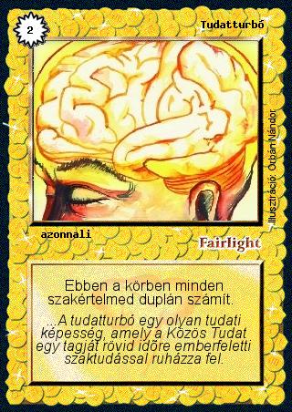| (AK7) Ha van két Taumaturgia szakértelem a játékban, akkor egy Tudatturbó kijátszásától 4-es lesz a taumaturgia szakértelem, a másodiktól pedig nyolcas. A Tudatturbó szövegében az szerepel, hogy minden szakértelmed duplán számít, így az első után kettesek a szakértelmeid, a második után négyesek. |