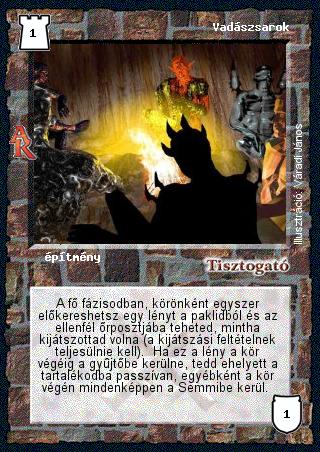 Kiadás: Alanori Krónika Gyakoriság: ritka Lapszín (isten): Tisztogató Klán Típus: építmény Szöveg: A fő fázisodban, körönként egyszer előkereshetsz egy lényt a paklidból és az ellenfél őrposztjába teheted, mintha kijátszottad volna (a kijátszási feltételnek teljesülnie kell). Ha ez a lény a kör végéig a gyűjtőbe kerülne, tedd ehelyett a tartalékodba passzívan, egyébként a kör végén mindenképpen a Semmibe kerül. Illusztráció: Váradi János
